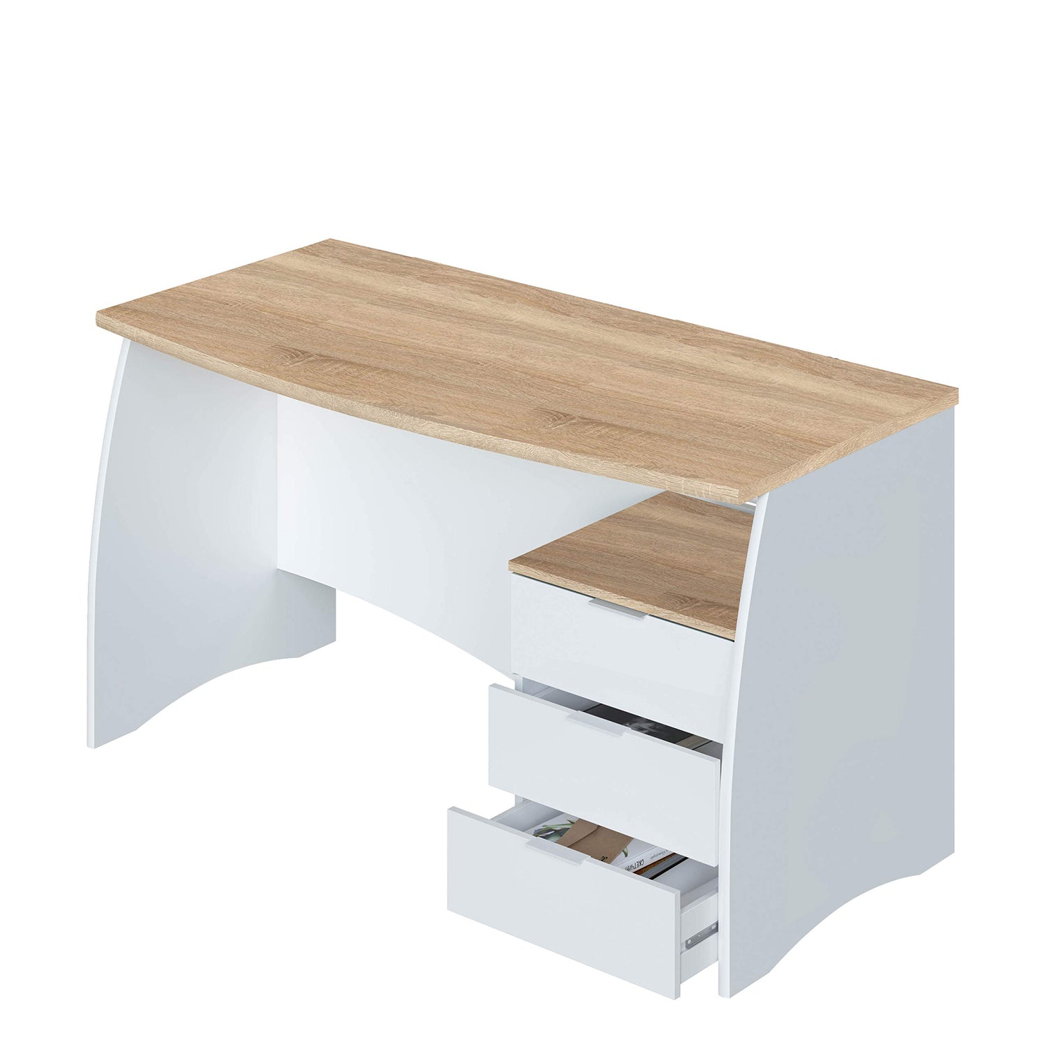 Habitdesign Mesa de Despacho con 3 Cajones, Mesa de Oficina o Estudio, Modelo Stil, Acabado en Balnco Artik y Roble Canadian, Medidas: 136 cm (Ancho) x 67 cm (Fondo) x 74 cm (Alto)