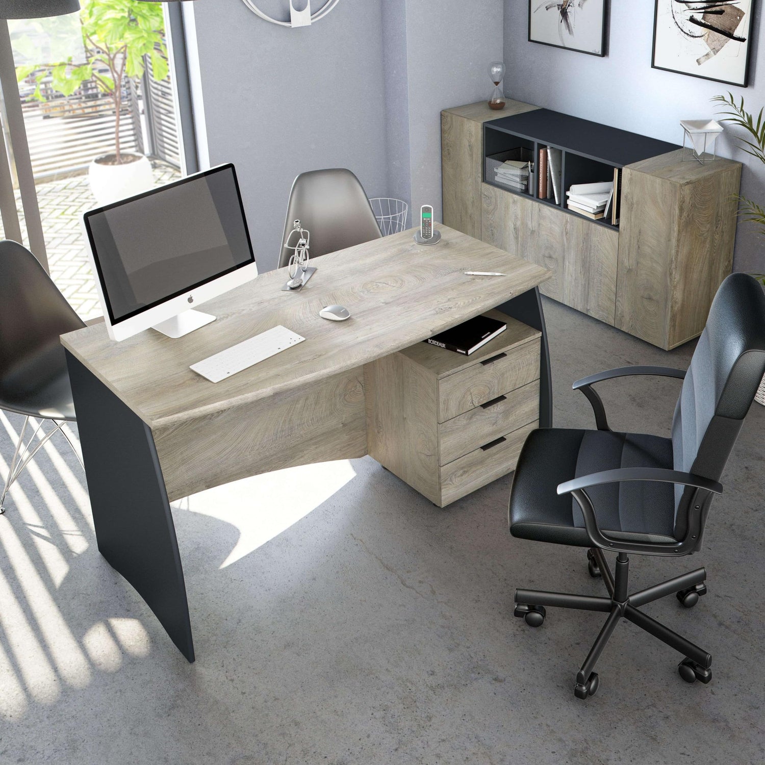Habitdesign Mesa de Despacho con 3 Cajones, Mesa de Oficina o Estudio, Modelo Stil, Acabado en Gris Antracita y Roble Alaska, Medidas: 136 cm (Ancho) x 67 cm (Fondo) x 74 cm (Alto)