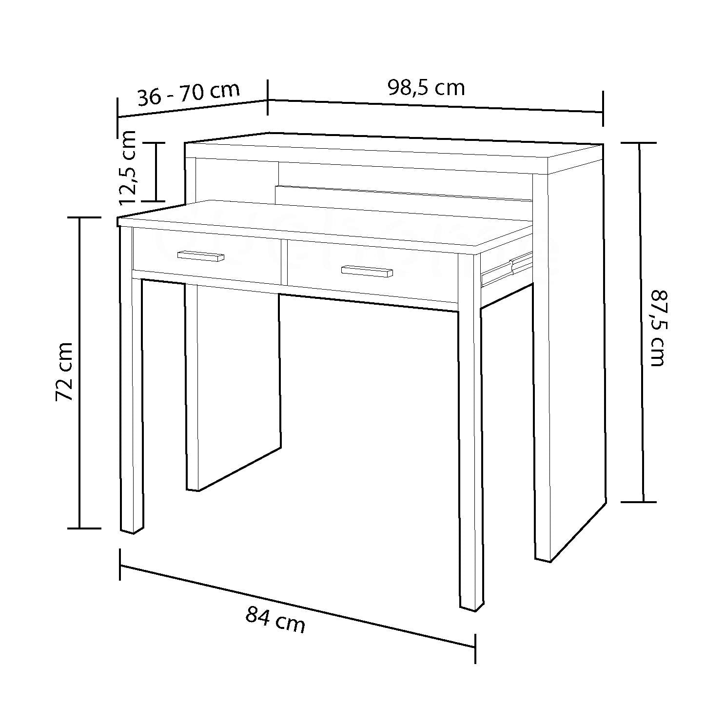 Habitdesign Mesa Escritorio Extensible, Mesa Estudio, Consola, Color Blanco Artik, Medidas: 98,5 cm (Largo) x 36-70 cm (Fondo) x 87,5 cm (Alto)