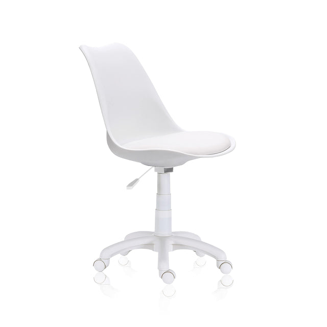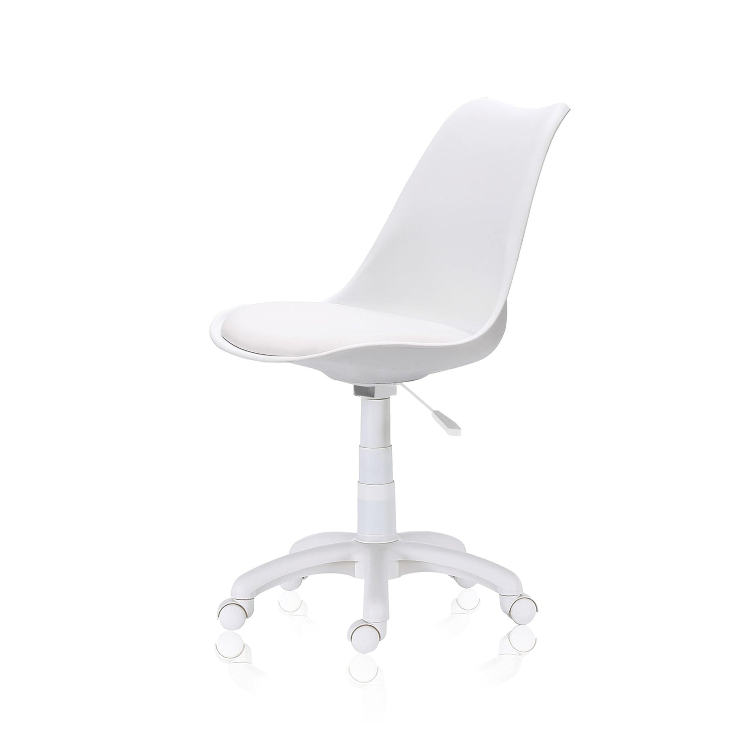 Lina Silla Giratoria para Estudio, Escritorio o Dormitorio, Acabado en Blanco, Medidas: 60 cm (Ancho) x 60 cm (Largo) x 79-89 cm (Alto)