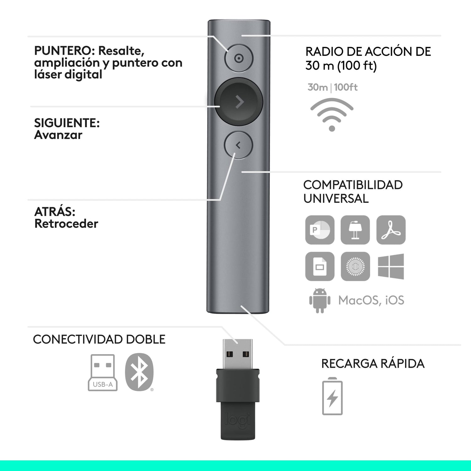 • Compatibilidad Universal : el presentador inalámbrico Logitech Spotlight con su cursor potente se ha optimizado para funcionar con Windows o macOS