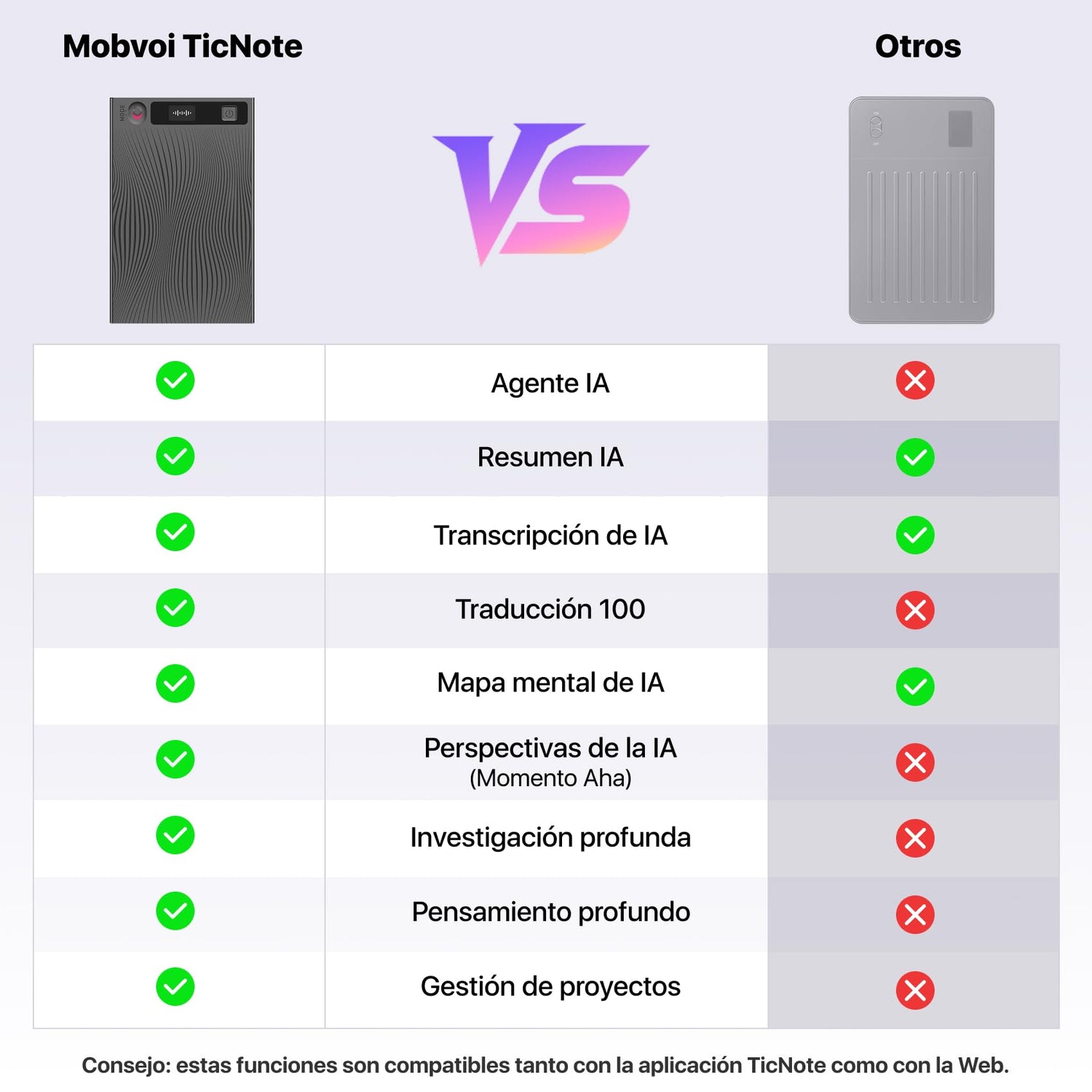 • 【Package Contains】1 Mobvoi TicNote, 1 funda negra, 1 anillo magnético y 1 cable de carga magnético. Además: Las compras del 15 de abril al 15 de julio de 2025 incluyen 3 meses gratis de Pro (1500 créditos/mes).