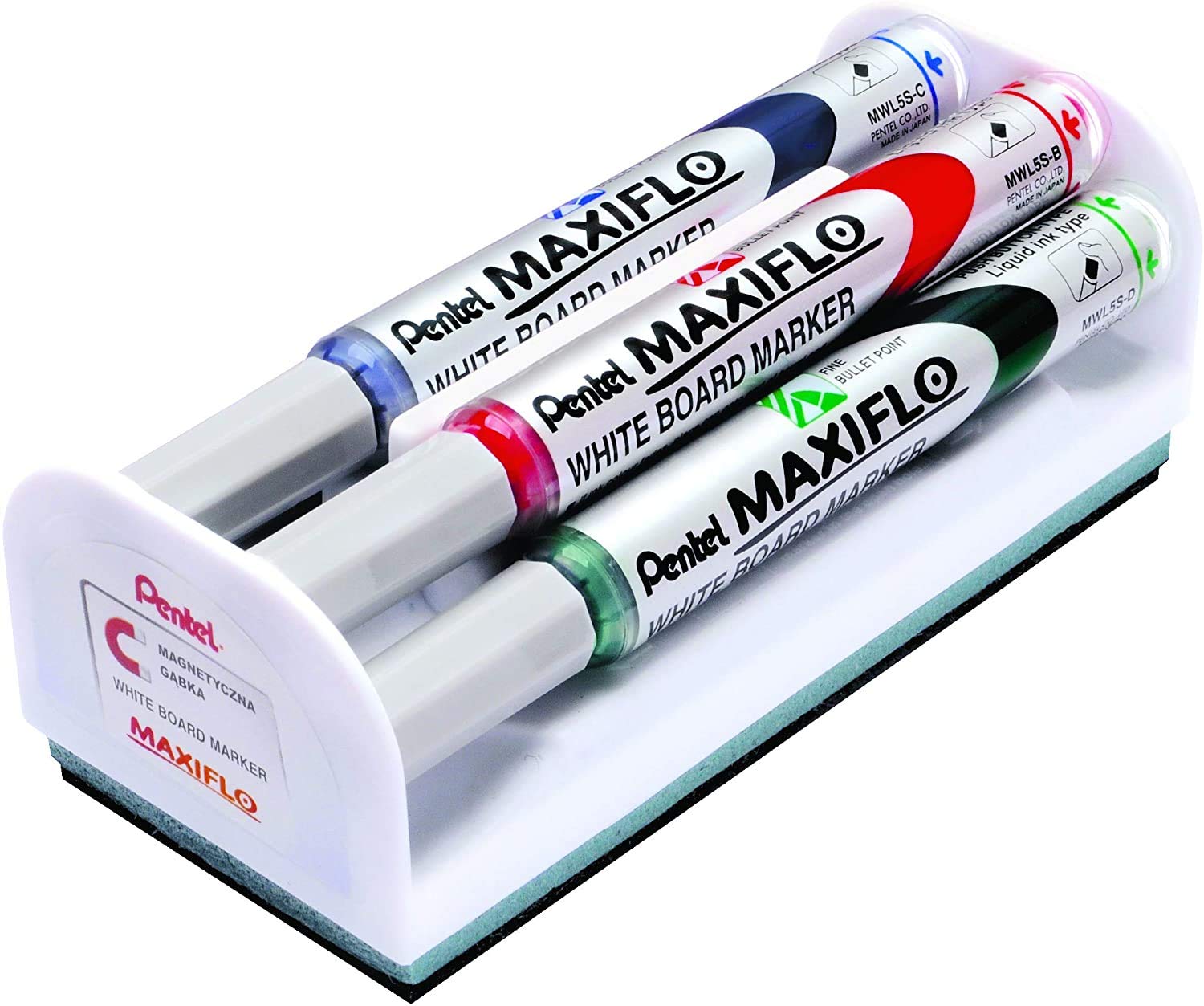 - ✅ El paquete incluye: Pizarra blanca magnética borrable y un borrador magnético ligero en forma de estuche con 4 retuladores para la pizarra de Pentel Maxiflo.