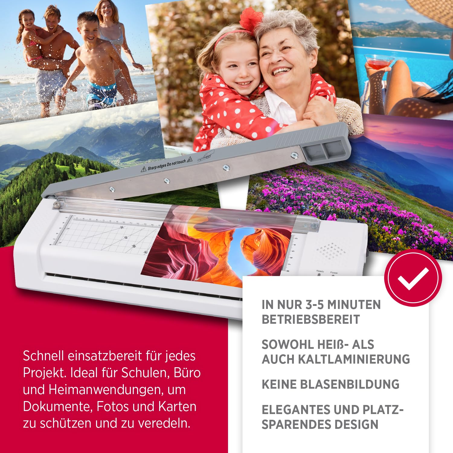 - PREPARACIÓN DE FUNCIONAMIENTO RÁPIDO: el tiempo de calentamiento de solo 3 a 5 minutos permite un inicio rápido del trabajo. Con una velocidad de laminación de 250 mm/minuto, el dispositivo garantiza un flujo de trabajo suave y eficiente.