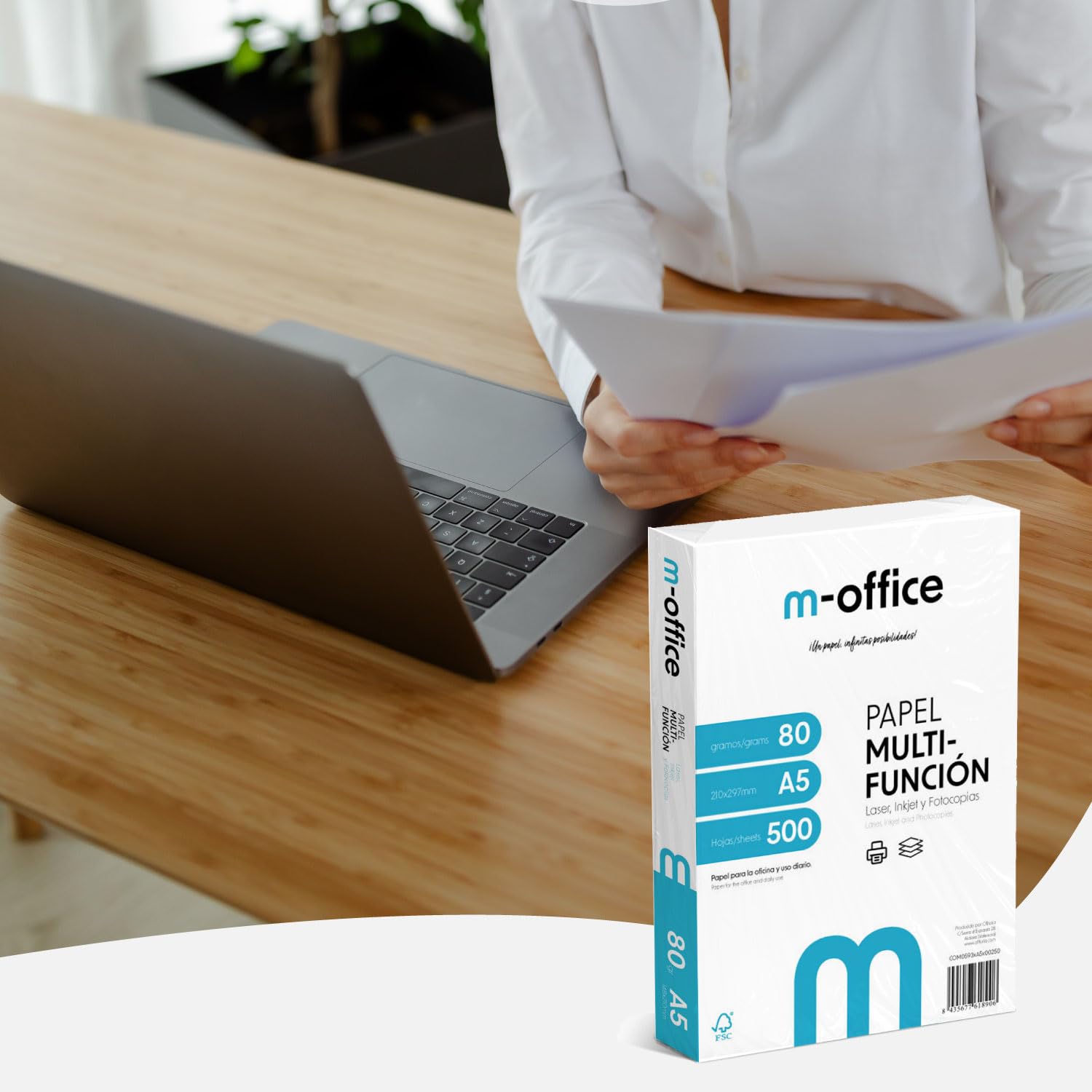 Paquete Folios A5 80gr, 10 Paquetes de 500 hojas, Papel Multifunción para Impresora Inkjet y Láser, Hojas A5 148 x 210 mm Ideales para la Oficina como para el Hogar · m-office (5000 hojas)