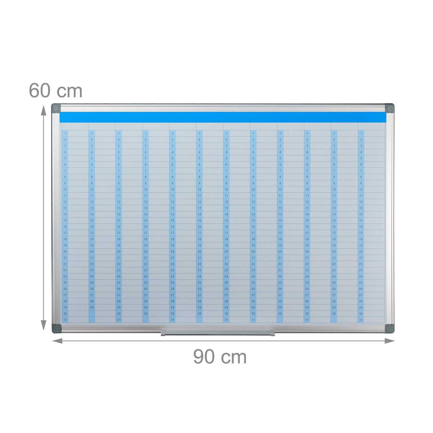 Relaxdays Pizarra Magnética, Planificador Anual, Reutilizable, Organizador, Bandeja para Bolígrafos, 60 x 90 cm, Blanco