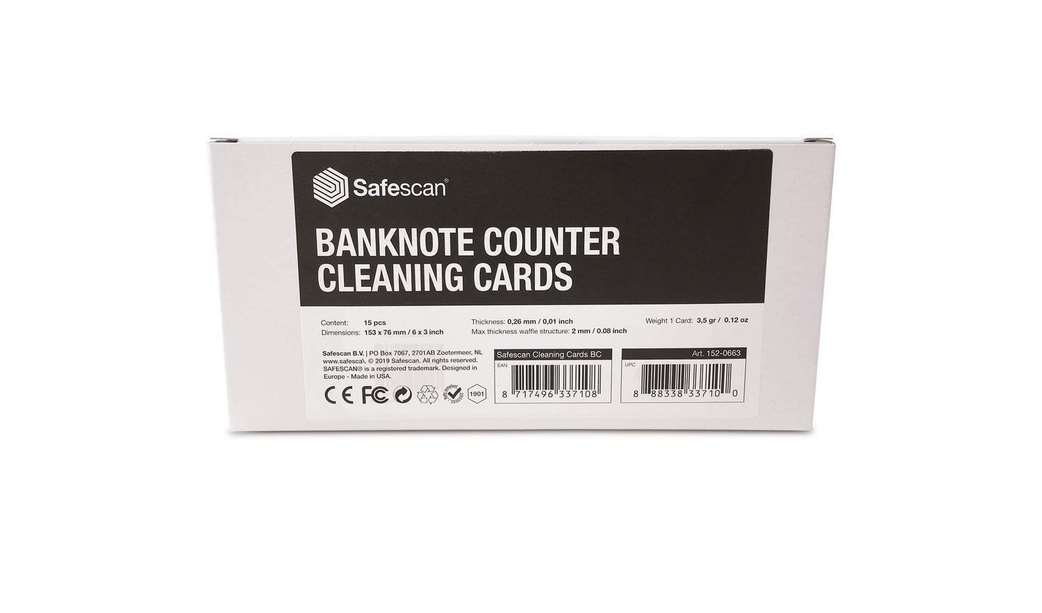 Detalles: Para mantener el mejor rendimiento posible y asegúrese de que las facturas de contrapeso permanezcan fuera de su negocio, la limpieza regular de su contador de billetes es imprescindible. Los billetes más largos y frecuentes están circulados, más polvo y suciedad que contienen. Este grime puede impedir el funcionamiento de los sensores integrados y el sistema de rodillos de su billete de banco. Usando regularmente tarjetas de limpieza de contador de billetes de Safescan, mantiene limpias las piezas internas del mostrador y puede continuar contando confiablemente y verificar la autenticidad de los billetes