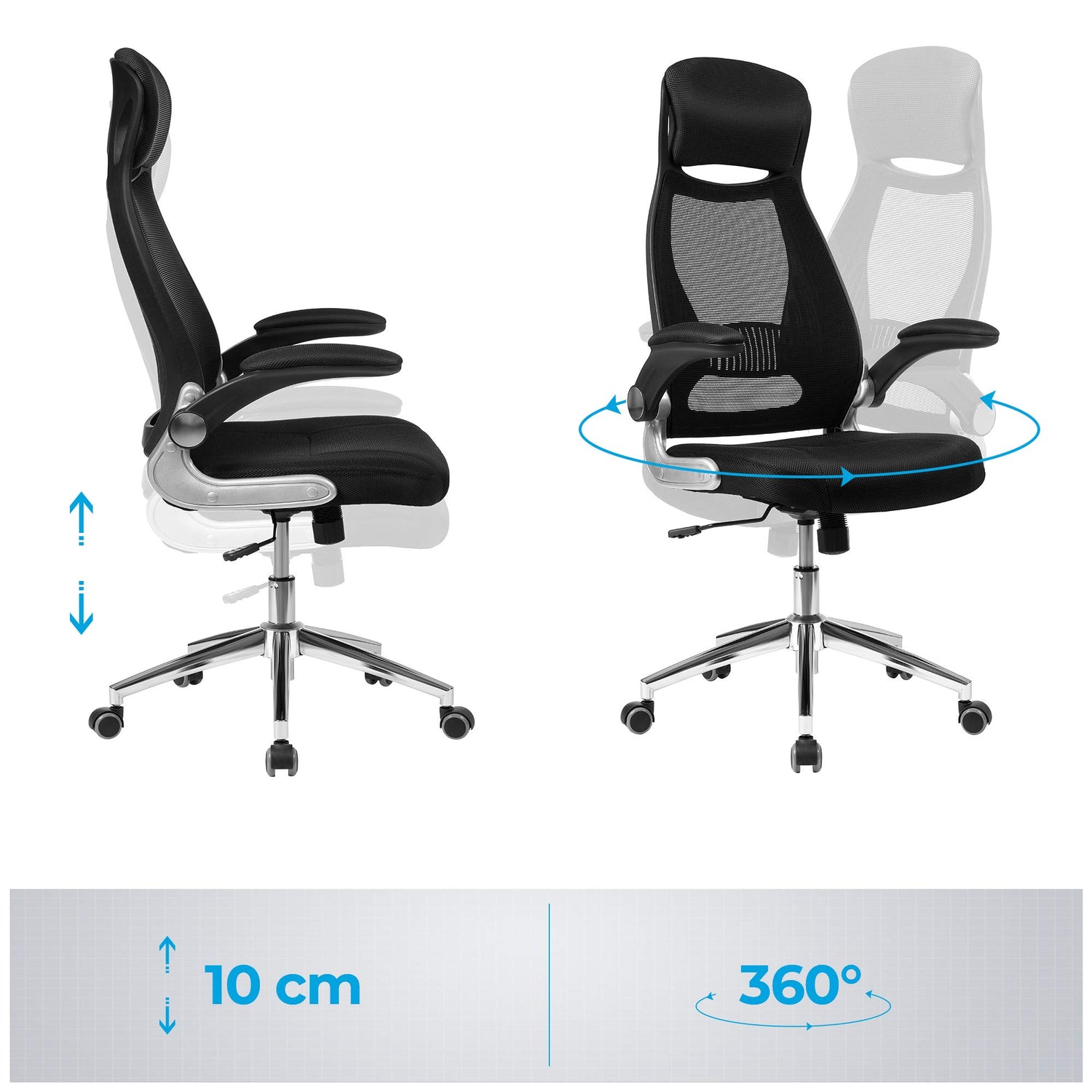 SONGMICS OBN86BK Silla giratoria de Oficina Silla de Escritorio de Malla con reposacabezas Mecanismo sincronizad y Altura Ajustable Negro