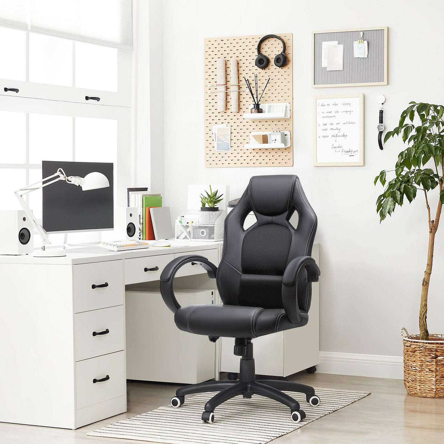 SONGMICS Racing Silla de Escritorio de Oficina Ergonómica Regulable con Ruedas, OBG56B, Negro, 776732 is backordered and will ship as soon as it is back in stock.