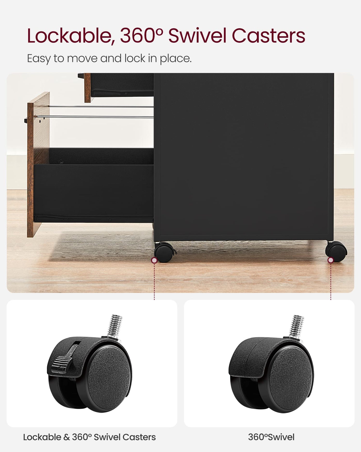 - [Ruedas giratorias de 360°bloqueables] Este archivador móvil viene con cuatro ruedas giratorias de 360°, lo que te permite trasladarlo a donde quieras. Y lo que es mejor, las 2 ruedas delanteras con freno bloquean el armario en su sitio si es necesario