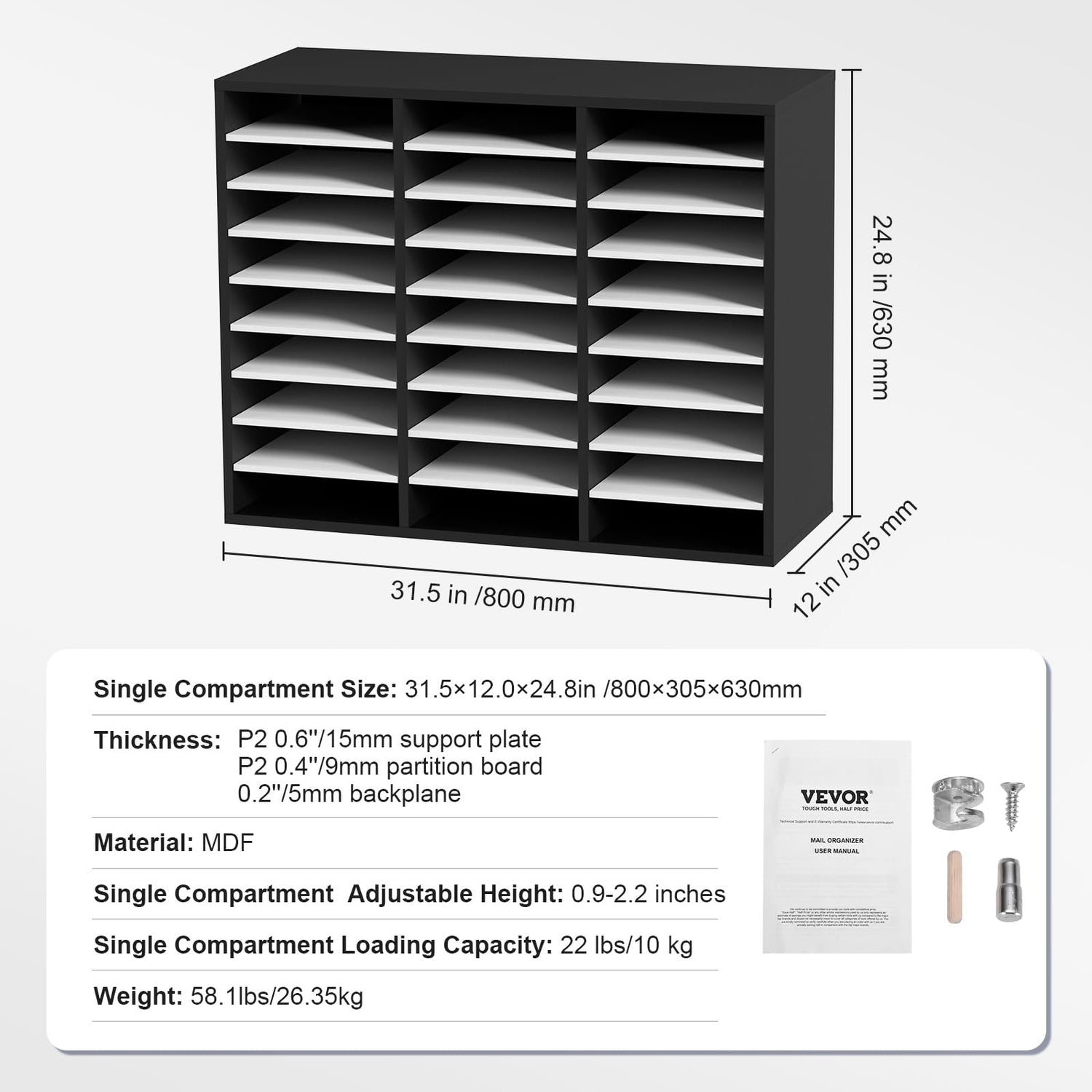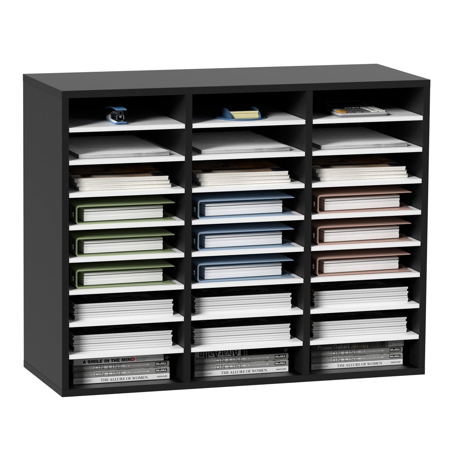 VEVOR Organizador de Literatura de Madera de 27 Ranuras de 800x305x630 mm, Estantes Ajustables de Tablero de Fibra de Densidad Media, Almacenamiento para Archivos, Documentos, Papeles, Negro y Blanco