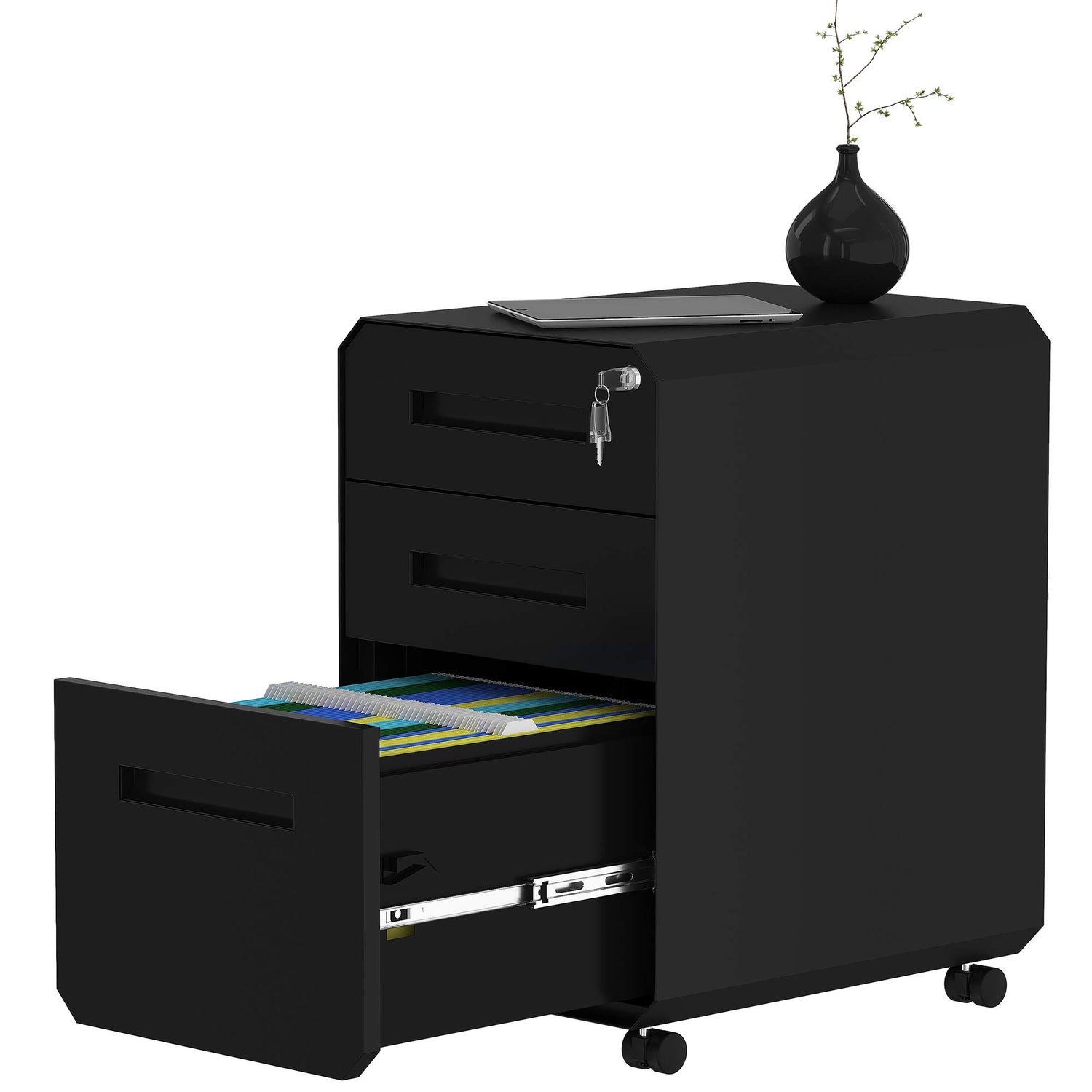 YITAHOME Armario Archivador con 3 Cajones, Cajonera de Oficina Móvil con Ruedas, Metalico Mueble Oficina Archivador con Cerradura y Llave para Carta/A4, Negro, 51 x 40 x 64cm