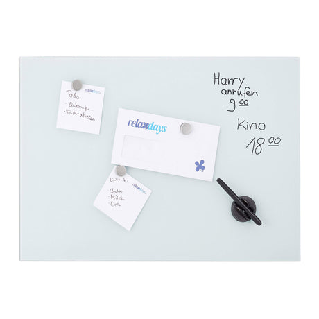 Relaxdays Pizarra Magnética Grande, Cristal, Blanco, 80 x 50 cm