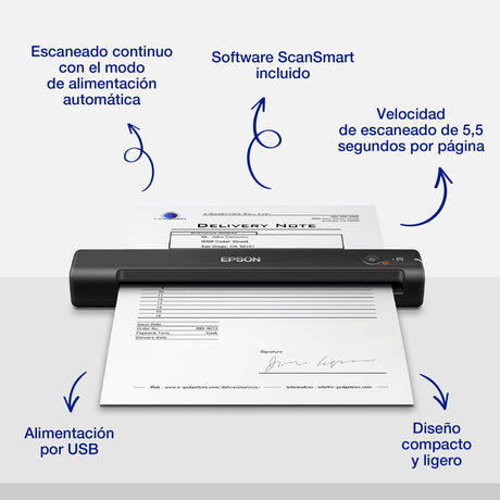 Escáner móvil rápido WorkForce ES-50 A4 con tecnología Epson ScanSmart y sin tiempo de encendido