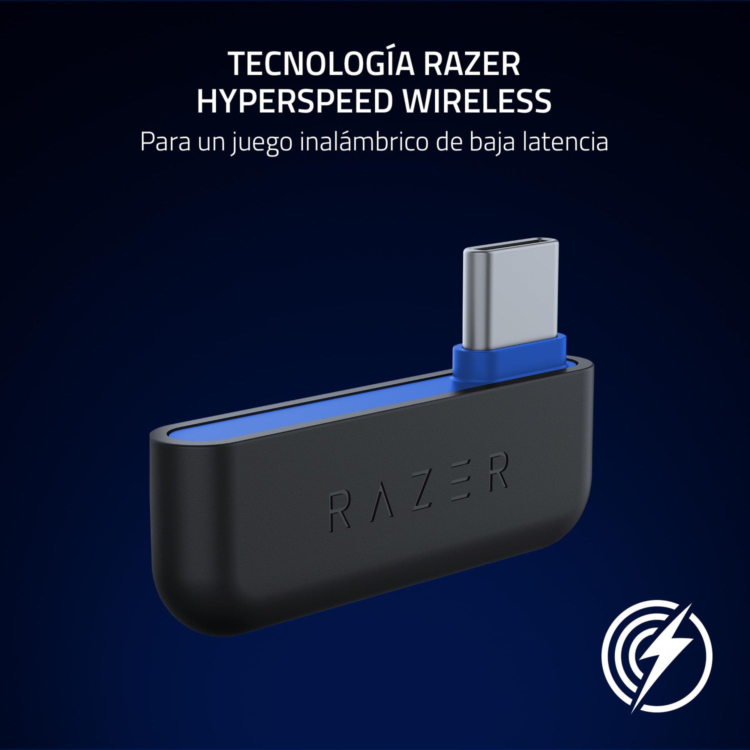 - Tecnología Razer HyperSpeed Wireless: Al ofrecer una conexión inalámbrica ultrarrápida de 2,4 GHz a través de su dongle USB Type C incluido, los auriculares garantizan un audio fluido y de baja latencia que satisface las exigencias del juego competitivo en numerosas plataformas.
