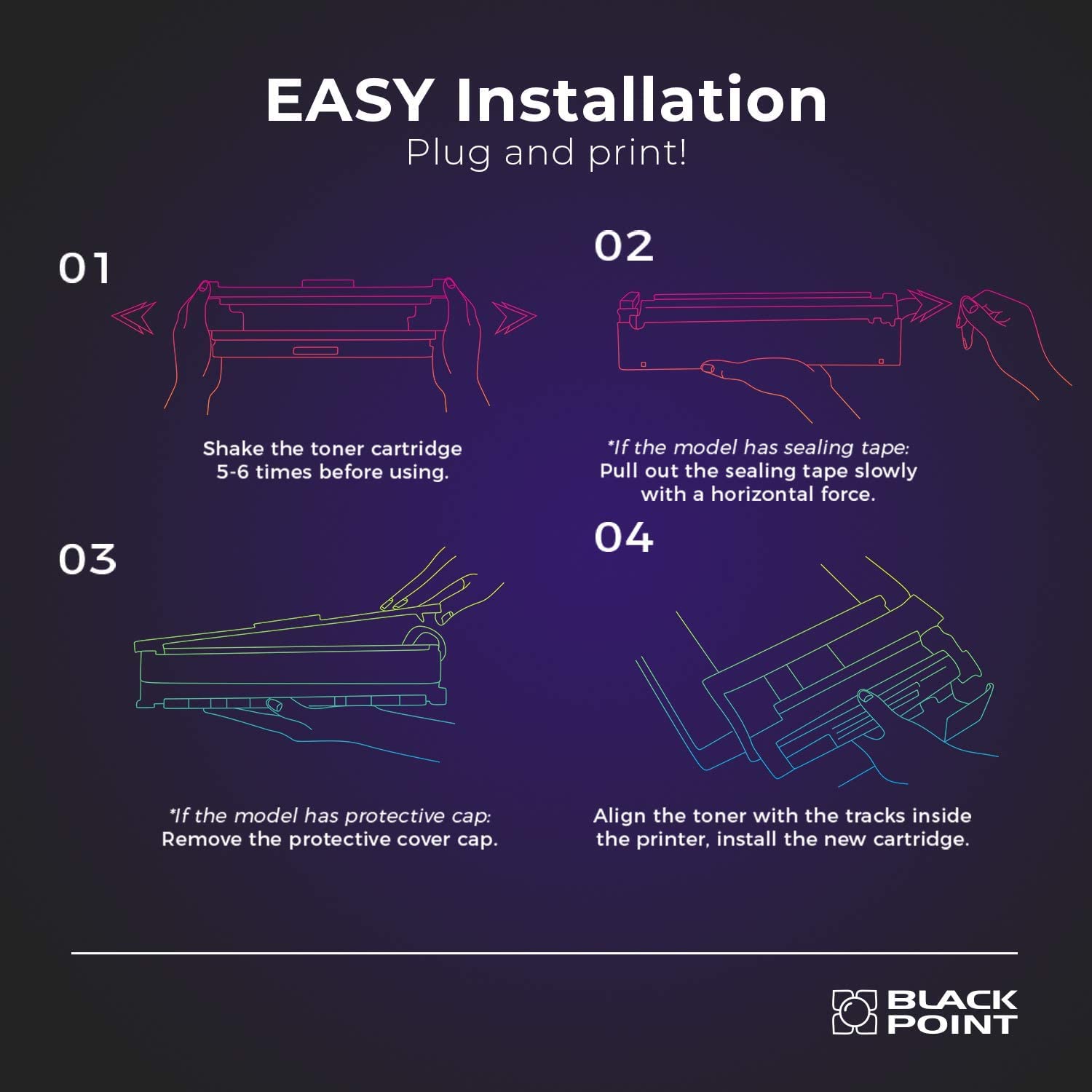 • ✔ FÁCIL INSTALACIÓN - los tóners Black Point están listos para su uso inmediato. La instalación de tóner en la impresora no le causará ningún problema. No tienes que preocuparte por nada: ¡lo pones en la impresora y funciona!