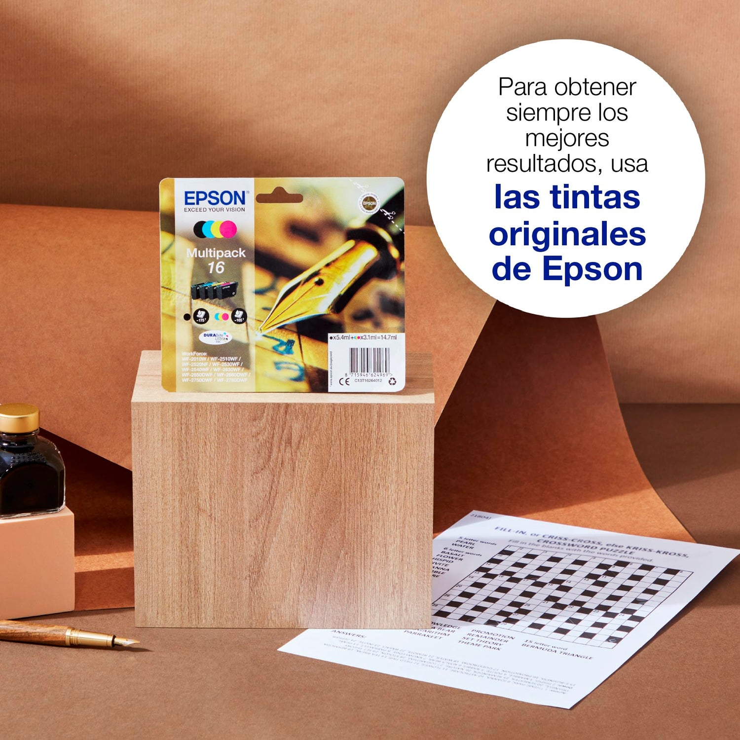 - Económica y fiable - Disfruta de copias fiables con una inversión mínima gracias a las tintas Epson 16 en cuatro colores. Gracias a las tintas pigmentadas, este pack de tintas produce copias nítidas y duraderas, resistentes al agua, a las manchas y a las marcas de rotulador.