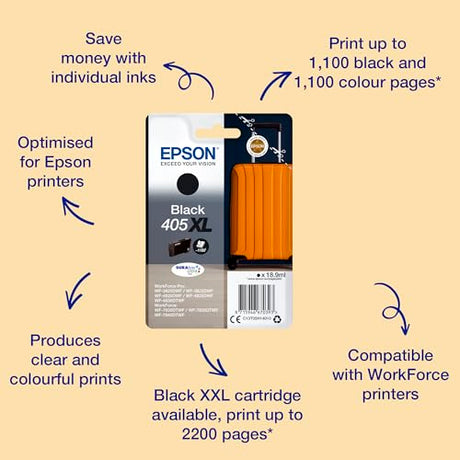Epson Ink/405XL BK Sec, Negro, Rendement élevé (XL)