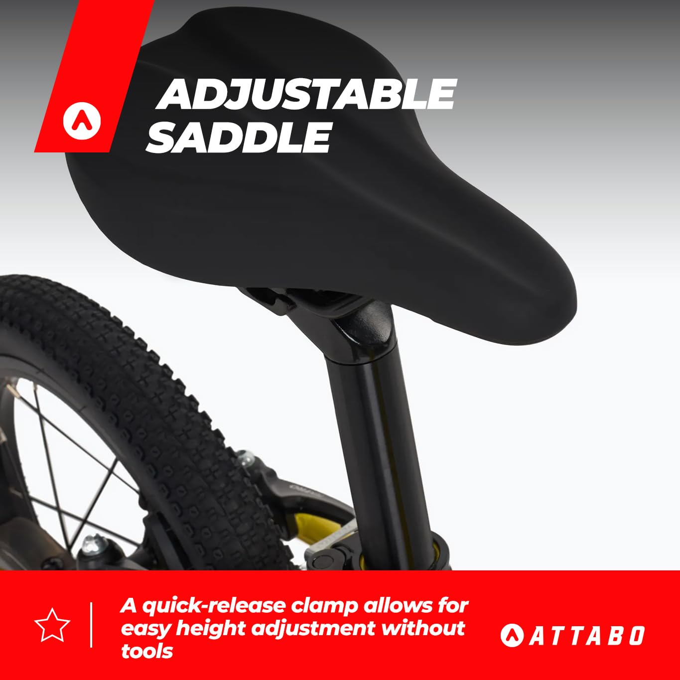 • Manillar ancho para un mayor control durante la conducción: el ATTABO EASE de 14 pulgadas está equipado con un manillar de aluminio de 480 mm de ancho y una elevación de 80 mm, ideal para proporcionar a los niños estabilidad y seguridad adicionales durante la conducción. El barrido trasero ergonómico de 10° proporciona una postura natural de la mano y aumenta el confort de conducción y el control de la bicicleta.