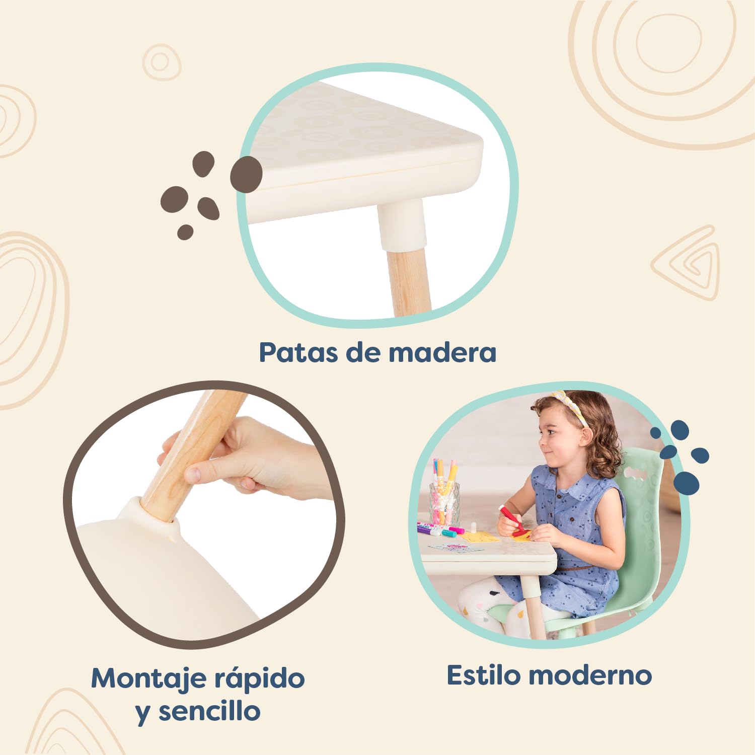 B. Spaces by Battat - Juego de Muebles Infantiles - 1 Mesa y 2 Sillas Infantiles con Patas de Madera Natural (Marfil y Madera Natural)