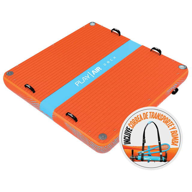 - ¿Qué Incluye?: Este pack incluye el Play Air Dock, una Correa de Transporte Duradera, un Bombín Swift Pro manual para el hinchado y un kit de reparaciones por si ocurriera algún accidente. Todo lo necesario para que te lances al agua