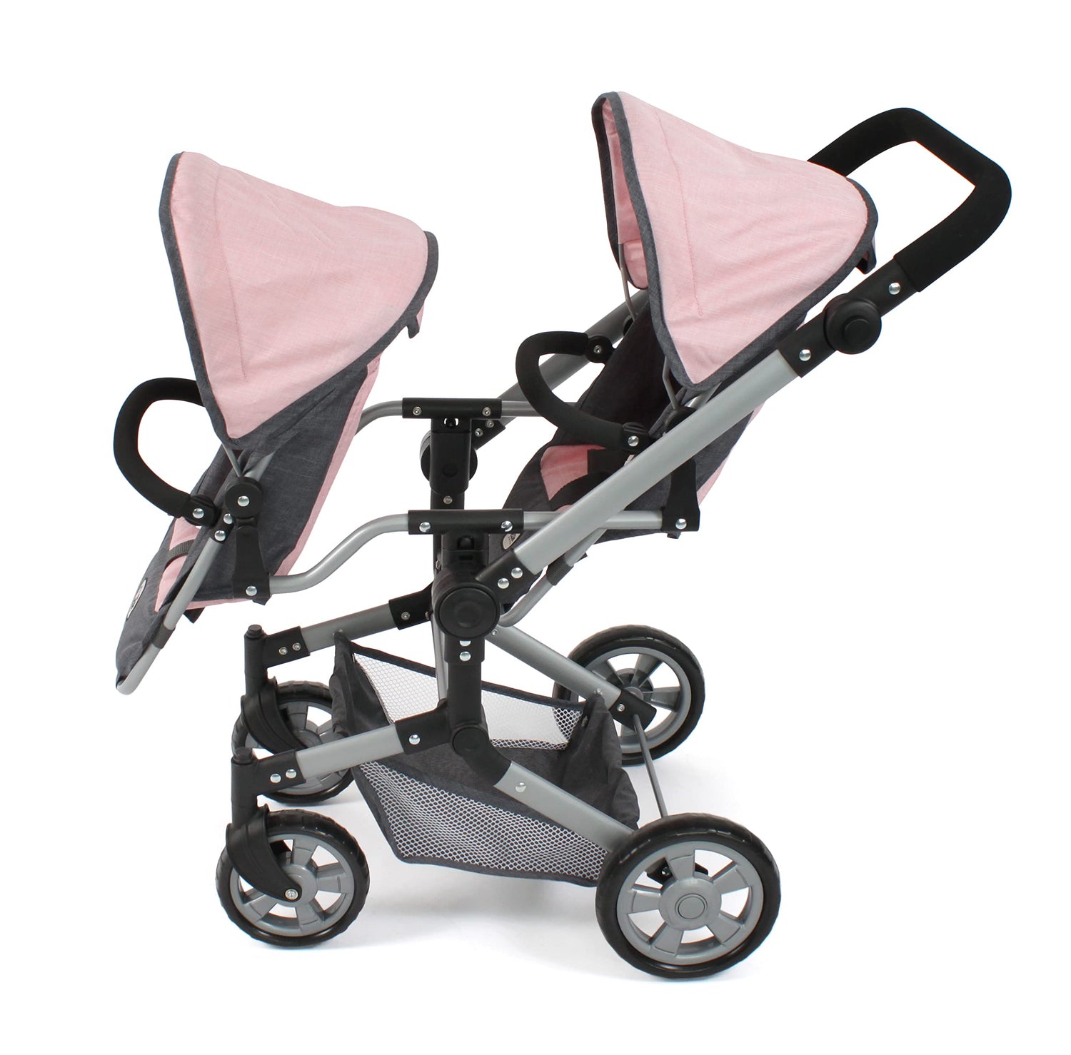 Bayer Chic 2000 - Cochecito para muñecas Linus Duo para niños de 4 a 8 años, Melange Gris Oscuro, Rosa, 690-81