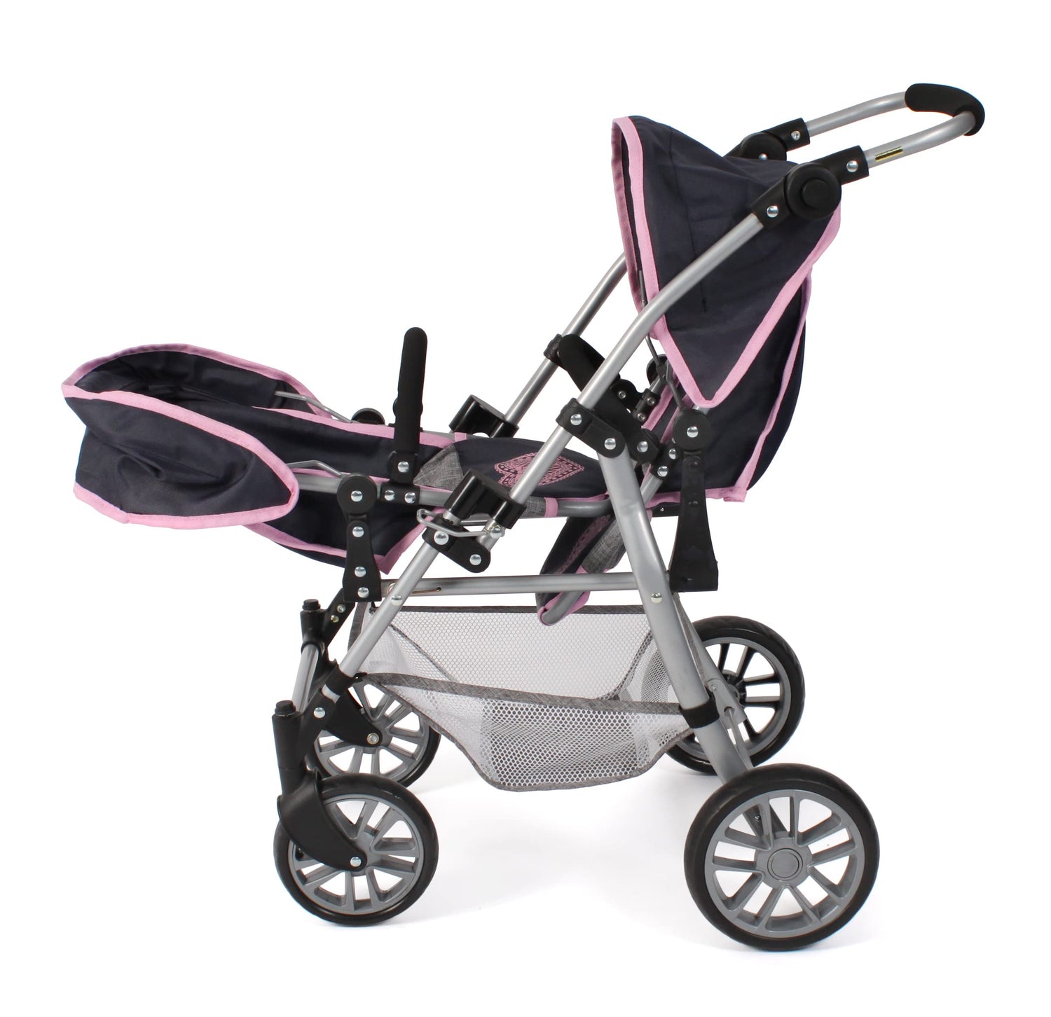 Bayer Chic 2000 - Cochecito para muñecas Twinny, Cochecito Doble para Dos muñecas, Cochecito Gemelo para niños de 4 a 8 años, Melange Gris-Azul Marino