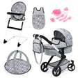 Bayer Design 17007AB Cochecito de muñeca XEO, Convertible, Regulable en Altura, Trona para muñeco bebé, Bolsa, Saco de Dormir, Gimnasio Actividades, Accesorios