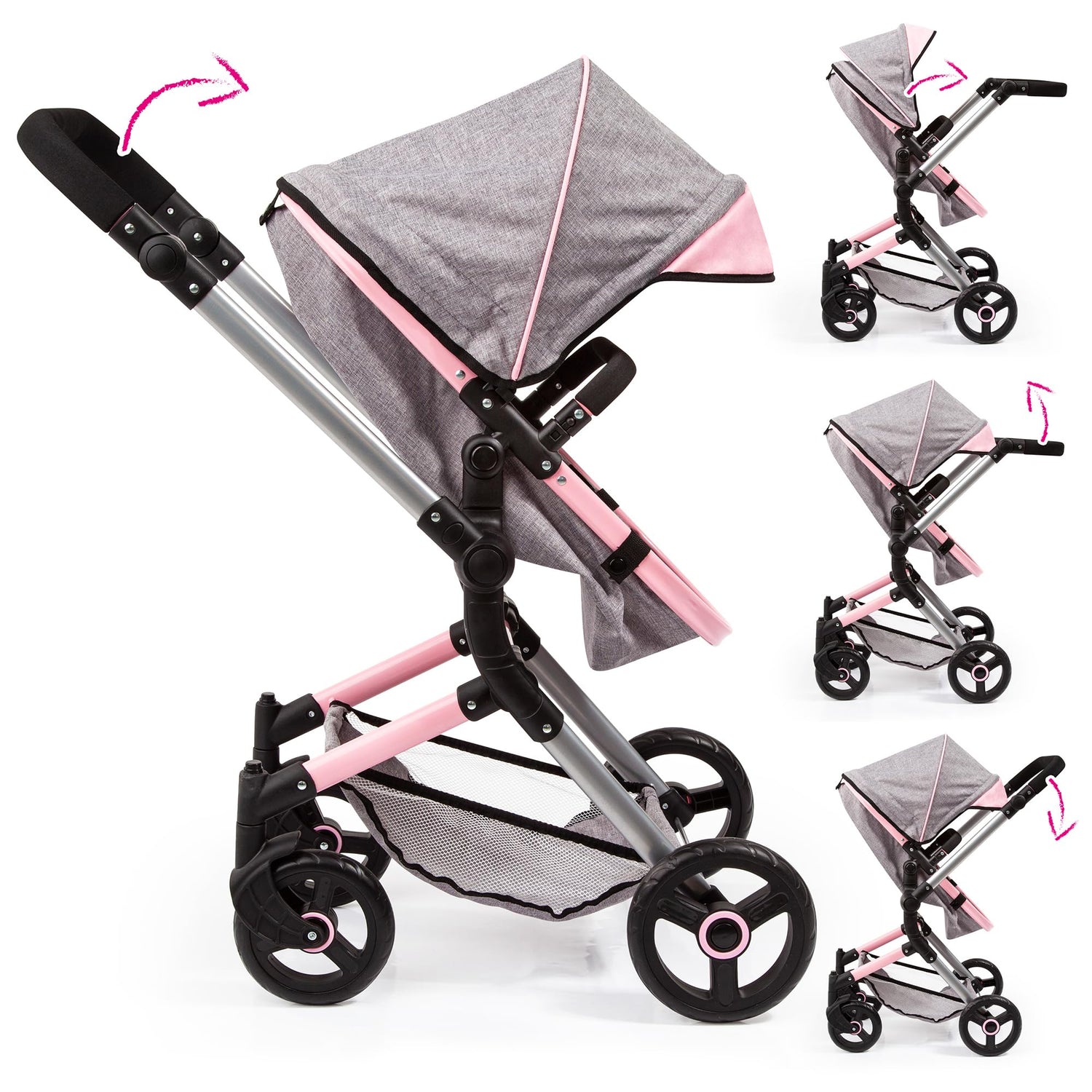 - Cochecito de muñeca convertible en silla de paseo y con bolsa