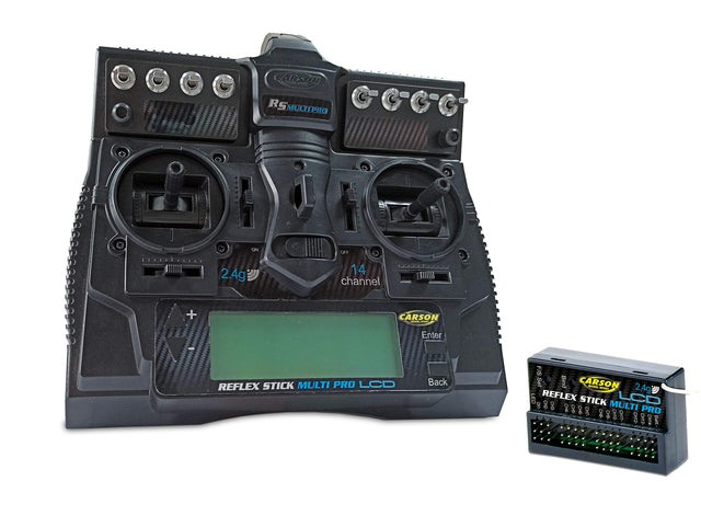 Carson 500501004 FS Reflex Stick Multi Pro LCD 2.4 GHz – 14 Canales Control Remoto Mando a Distancia con Receptor para vehículos de construcción de maquetas como Coches RC y Barcos