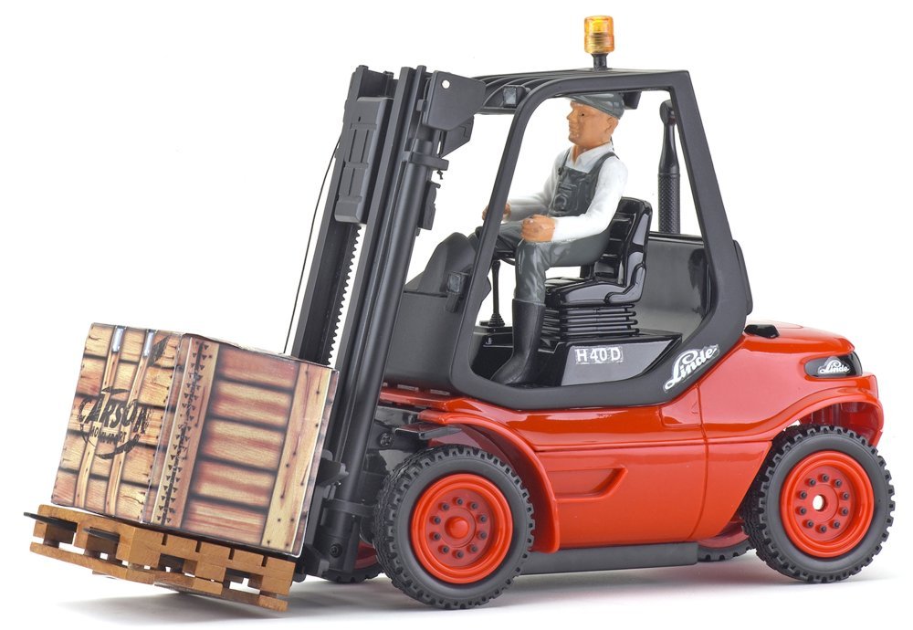 Carson 500907093 1:14 Carretilla elevadora Linde 2.4G 100% RTR - Vehículo de Control Remoto, vehículo utilitario, Funciones de luz y Sonido, Incluye baterías de transmisor