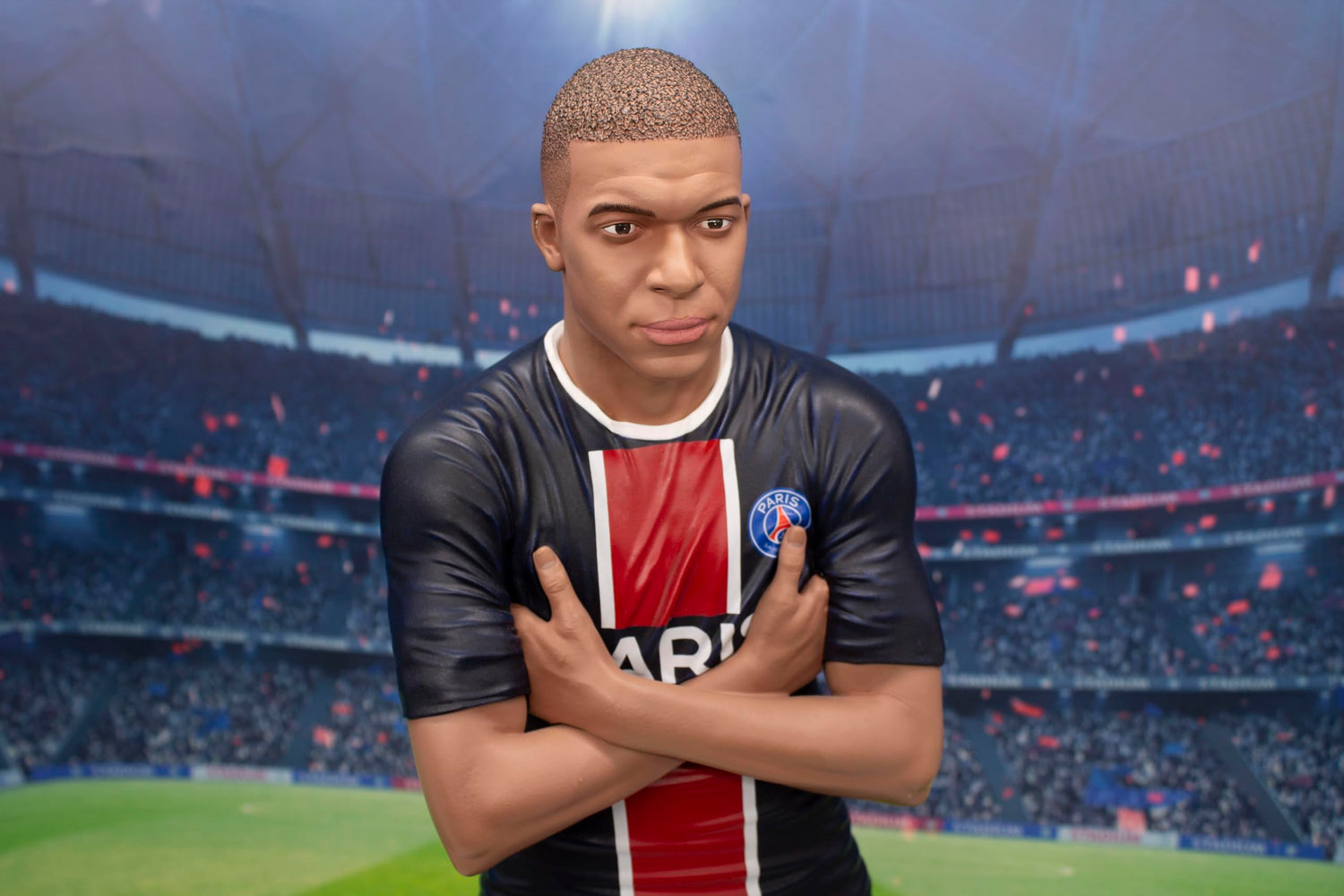 - The Football’s Finest Kylian Mbappe statue wears the classic Paris Saint-Germain home kit coupled with white football boots and is featured on a green base, which mirrors the turf at Le Parc des Princes.