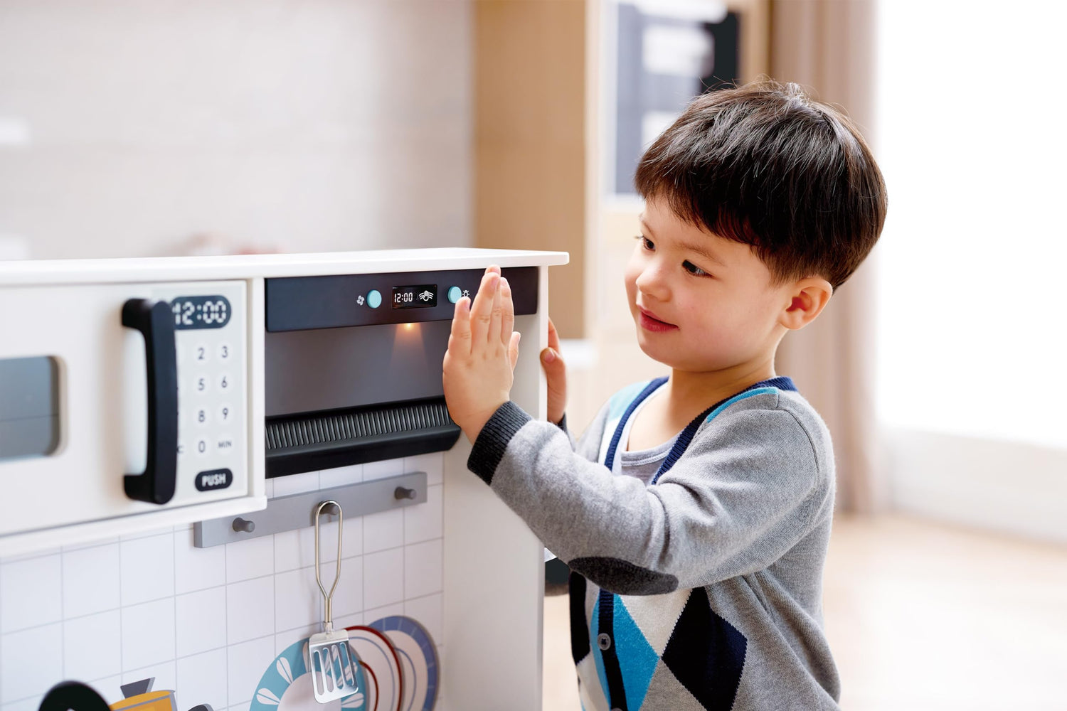 • Fomenta las habilidades motoras finas: manipular la comida, cubiertos y aparatos de juguete ayuda a los niños a desarrollar las habilidades motoras finas y la coordinación mano-ojo; cortar los alimentos, remover el guiso o abrir y cerrar las puertas de los armarios implica movimientos precisos de la mano