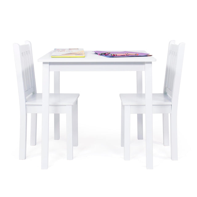 La mesa de madera cuadrada Humble Crew y el juego de 2 sillas son robustos, elegantes y fáciles de limpiar, y tienen el tamaño perfecto para satisfacer las necesidades de sus hijos, en pleno crecimiento. Esta mesa para niños con su juego de sillas puede utilizarse como mesa de estudio para hacer los deberes, como centro de actividades para arte y manualidades, o para jugar a juegos de mesa. También es una gran solución para aprender en casa, sobre todo para que los niños en edad escolar puedan asistir a sus clases on-line desde casa. Este conjunto incluye una mesa cuadrada y dos sillas, con un acabado moderno y versátil que complementará a la perfección la decoración de su casa. A la hora del aperitivo o cuando sea momento de jugar: este conjunto se convertirá rápidamente en el lugar favorito de la casa para sus hijos, donde podrán colorear, hacer puzzles, celebrar meriendas, jugar con coches y camiones, y mucho más. Este mobiliario tiene un montaje muy sencillo, e incluye todo lo necesario para ello. Este resistente conjunto de mesa y sillas cuenta con unas robustas patas de madera para una mayor estabilidad y durabilidad, y tiene el tamaño ideal para chicos y chicas entre 6 y 10 años. Tamaño del producto – Altura de la mesa: 58 cm Tablero: An 60 x Pr 60 cm Sillas: An 30 x Pr 30 x Al 66 cm Altura del asiento de las sillas: 33 cm Cada silla soporta hasta 31 kg
