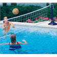 - Este juego de voleibol para piscina viene con dos postes de peso azul y una red extensible de hasta 7 metros de longitud.