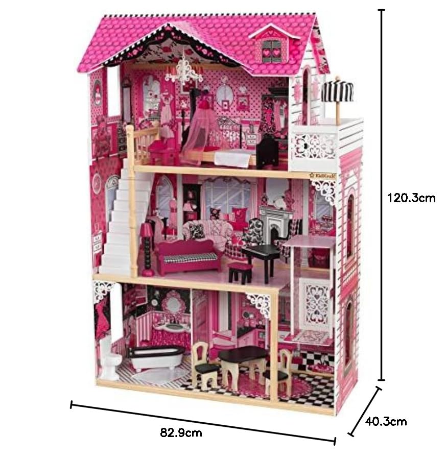 - DIVERSION SIN FIN - Esta óptimo cocina rosa y negra es el sueño de todo niño tiene 3 niveles, 4 habitaciones y un balcón. Tiene un altura de 120.9cm tall y está hecha de madera resistente de adecuada calidad