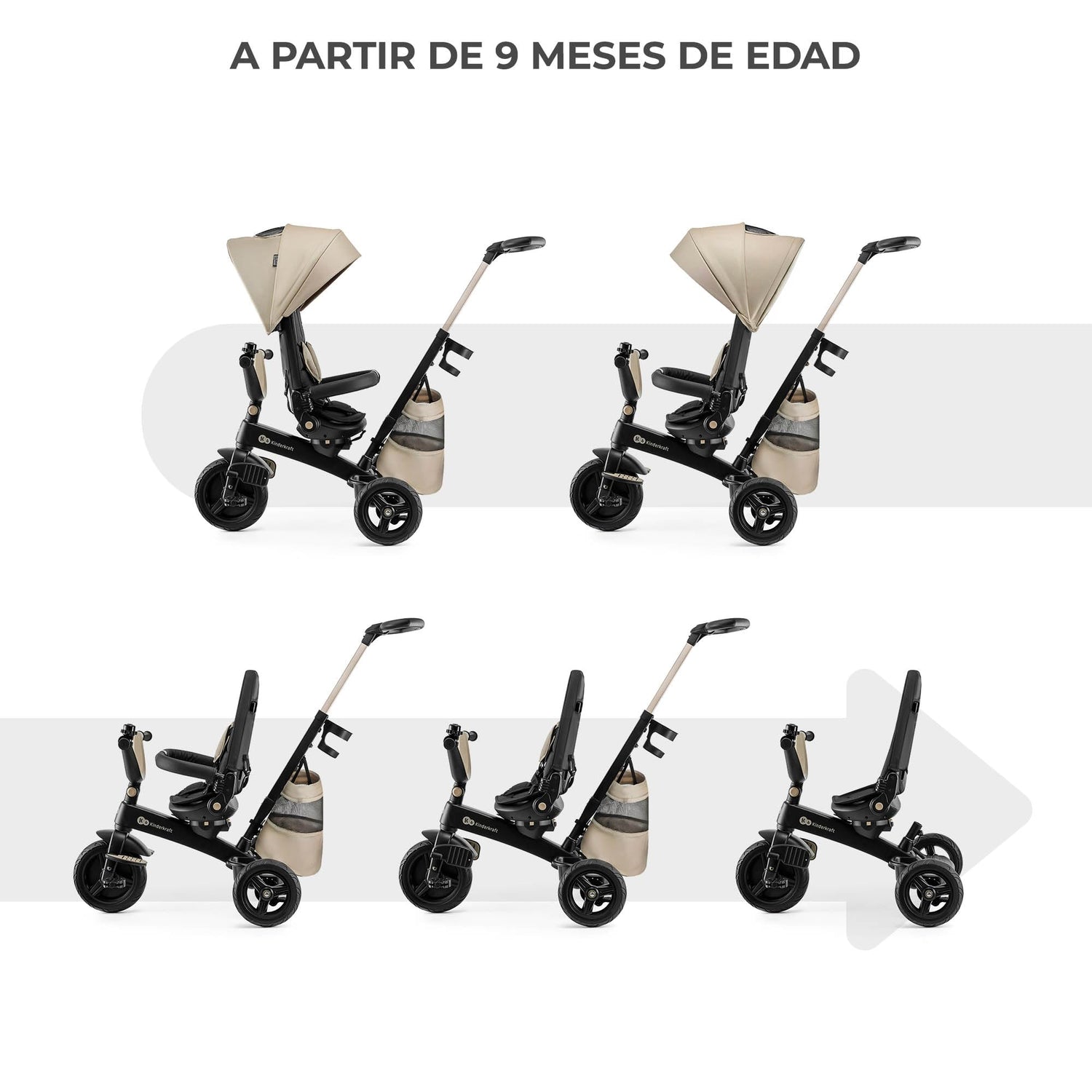 Kinderkraft EASYTWIST Triciclo Infantil, con Accesorios, Ventana de Techo, Cinturones de Seguridad, rotación de 360 Grados, Rueda Libre, Barra de Empuje, a Partir de 9 Meses hasta 5 años, Beige