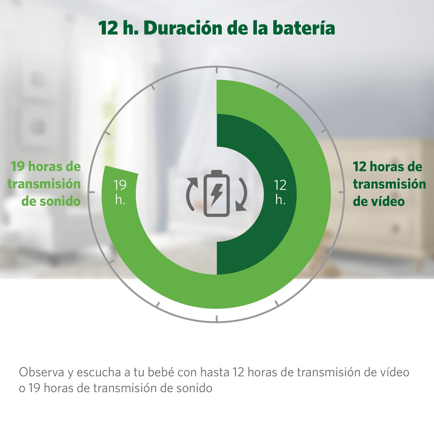 - [Batería recargable con hasta 12 horas de transmisión de video]: vigile o escuche a su bebé durante toda la noche con una sola carga con hasta 12 horas de transmisión de video o hasta 19 horas de transmisión de solo audio.