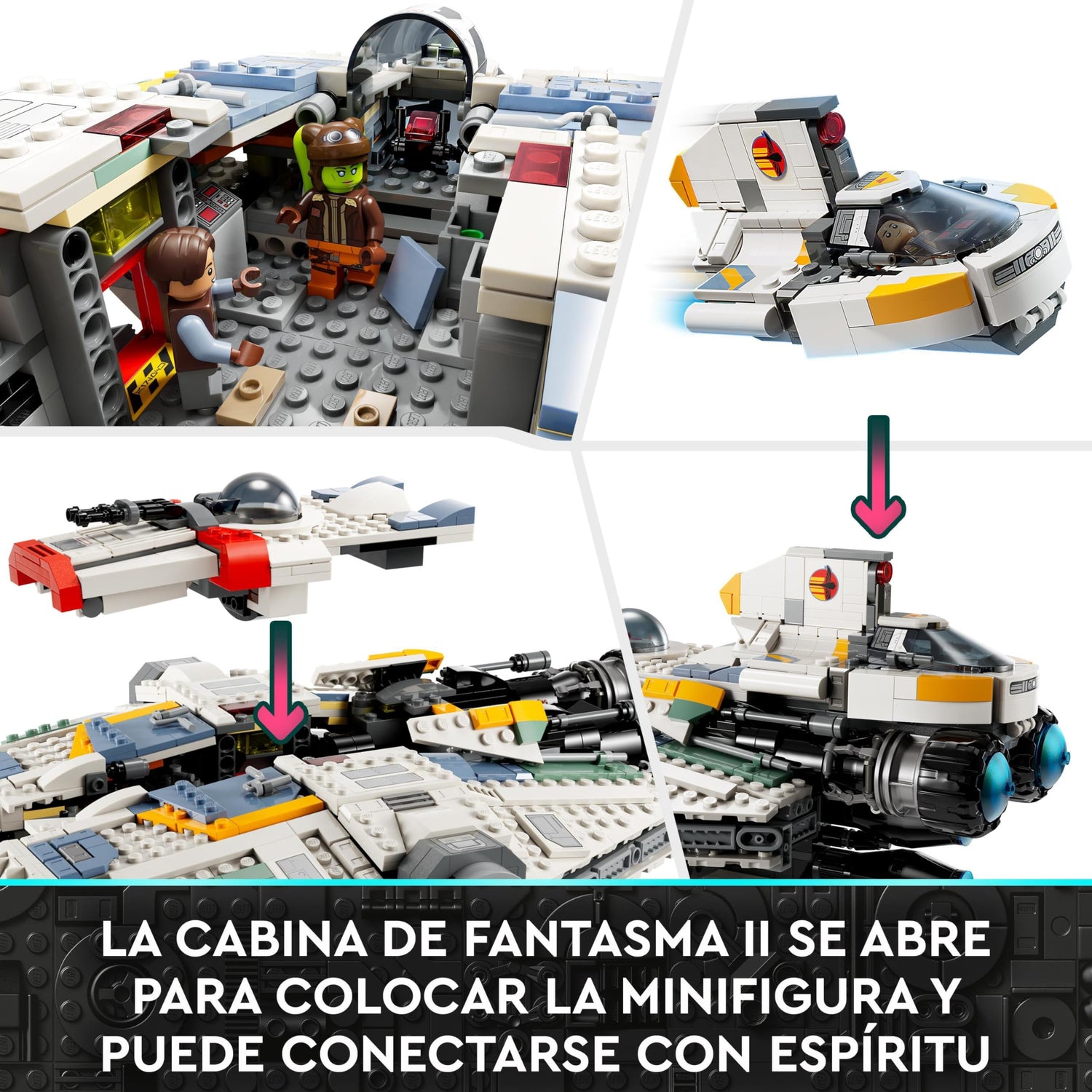 LEGO 75357 Star Wars Espíritu y Fantasma II, Set de 2 Vehículos de Ahsoka de Ladrillos, Nave Estelar de Juguete para Construir con 5 Personajes Jacen Syndulla y una Figura del Droide Chopper