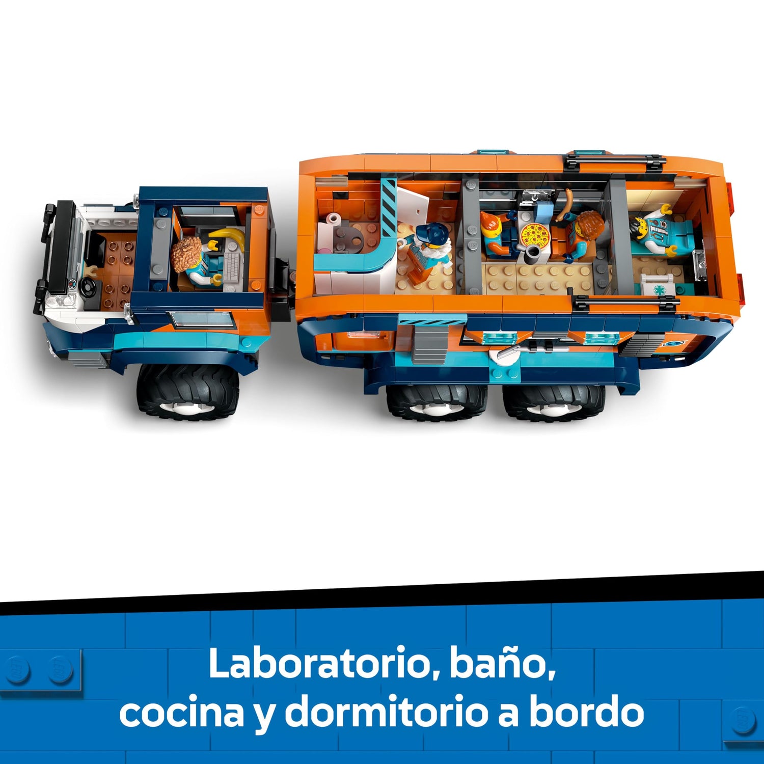 • ¿Qué contiene la caja? Incluye un camión de exploración, una moto de nieve de juguete y una cueva ártica, además de minifiguras LEGO de un conductor, una fotógrafa, una científica, un médico y una mecánica, y también 3 figuras de lobos blancos