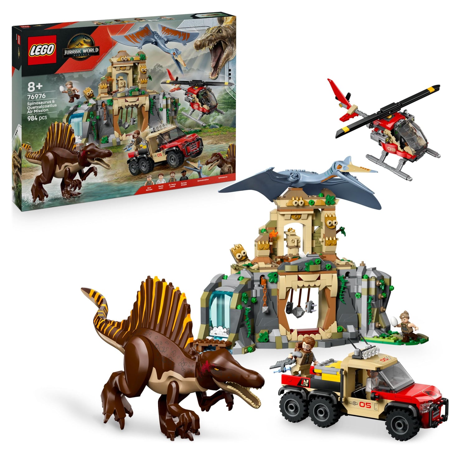LEGO Jurassic World Misión Aérea: Spinosaurus y Quetzalcoatlus - 2 Figuras de Dinosaurios, Camión y Helicóptero de Juguete y 4 Minifiguras - Regalo para Niños y Niñas de 8+ Años 76976
