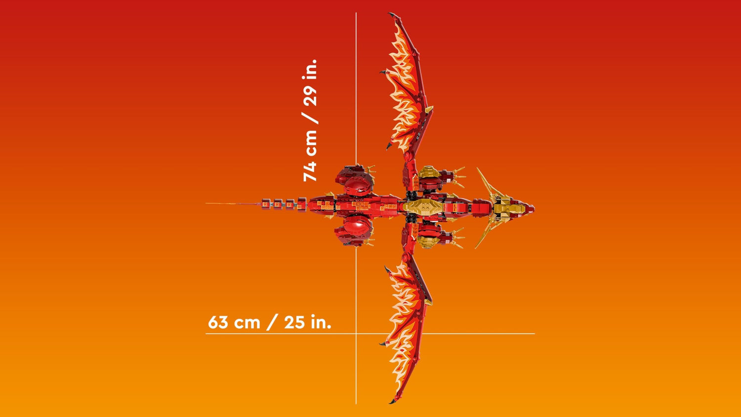 • Montura-trono: el dragón de juguete lleva en el lomo una gran montura-trono donde los peques pueden colocar una minifigura LEGO NINJAGO y desarrollar historias en el cielo
