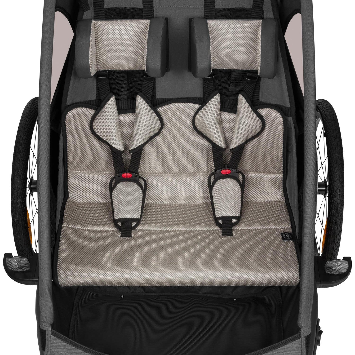 - REMOLQUE 2 EN 1: Cama es un remolque de bicicleta y cochecito para niños de 6 meses a 6 años, lo que lo convierte en el compañero de viaje perfecto durante muchos años. El remolque puede usarse desde los 12 meses hasta una altura de 116,5 cm. El cochecito transporta a 1 o 2 niños con un peso máximo de 2x22 kg