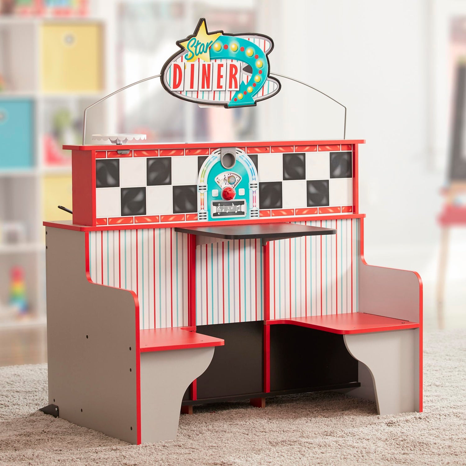 - Espacio de comedor de madera para jugar: el restaurante star diner de melissa & doug es un comedor completo de juguete hecho en madera que incluye una cocina de un lado y un espacio con dos asientos del otro