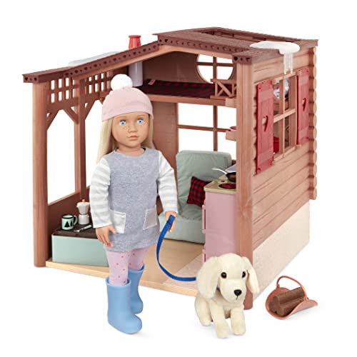 - Una auténtica cabaña de vacaciones especialmente diseñada para tus muñecas Our Generation de 46 cm