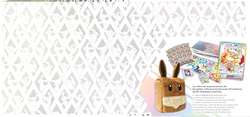 - ¡La mullidita y adorable caja para cartas de Eevee y el colorido tapete con Eevee y todas sus Evoluciones harán que esta colección superprémium de Escarlata y Púrpura-Evoluciones Prismáticas llene de alegría y felicidad tu próxima gran partida!