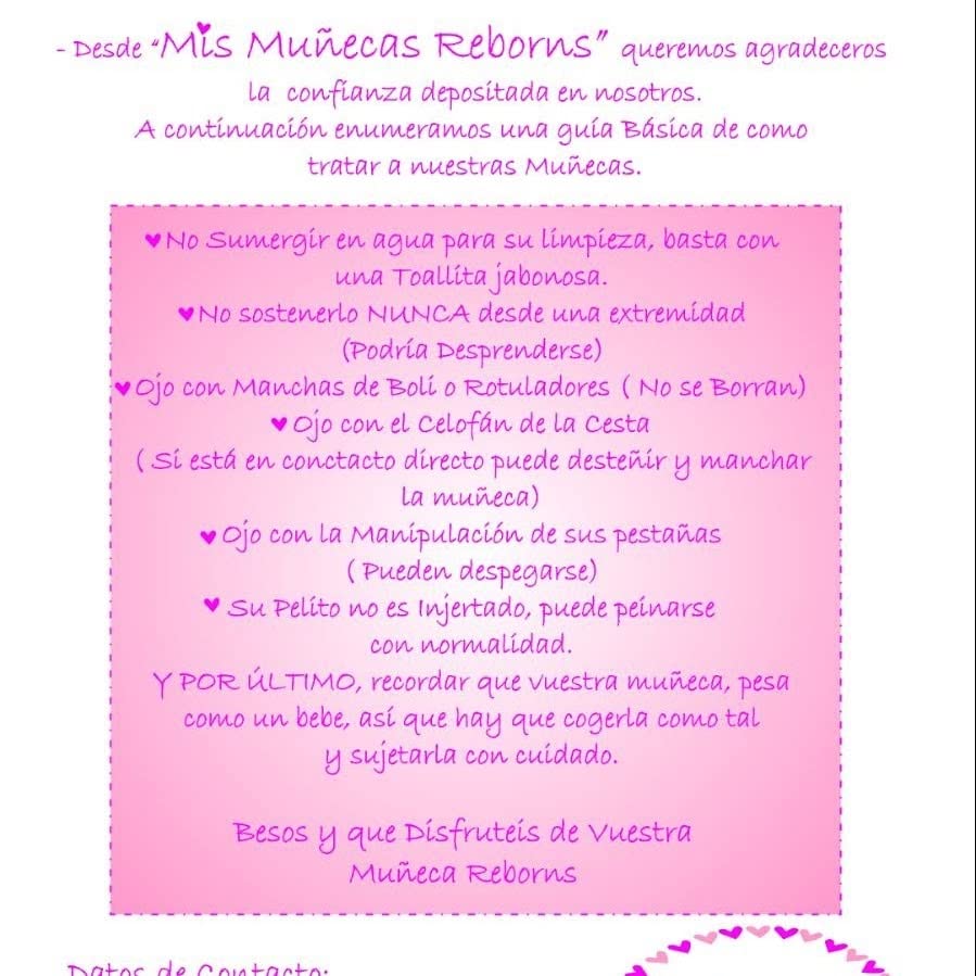 - Fabricantes especializados en reborns desde hace màs de 10 años,hechos en ONILL-ALICANTE-ESPAÑA,con certificado de autenticidad.DISPONEMOS DE UN AMPLIO CATALOGO DONDE ELEGIR TU REBORN,A PRECIOS MUY ASEQUIBLES.