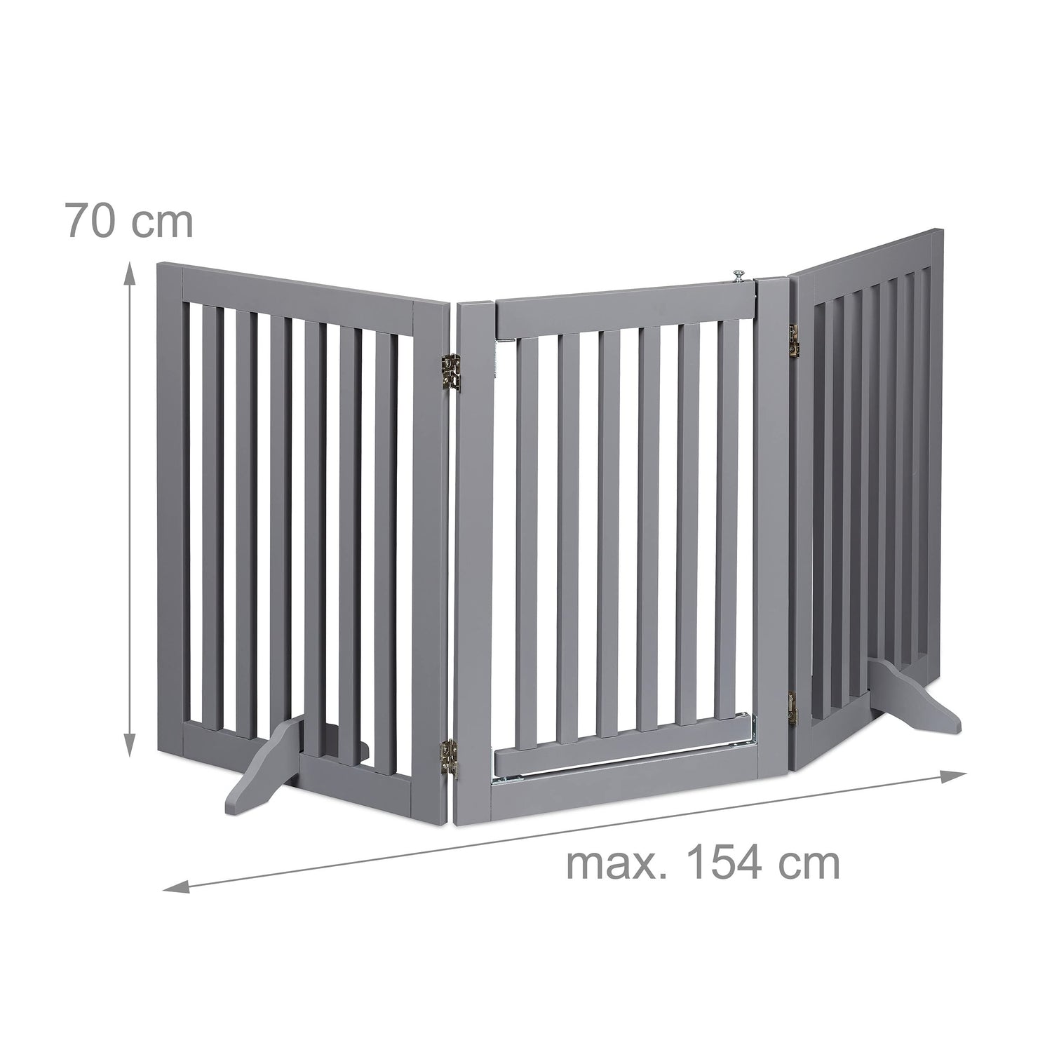 Relaxdays Barrera Seguridad Niños y Animales, Valla Protección Mascotas, Puerta, 70x154cm, Plegable, 3 Paneles, Gris, Tablero de Fibras