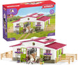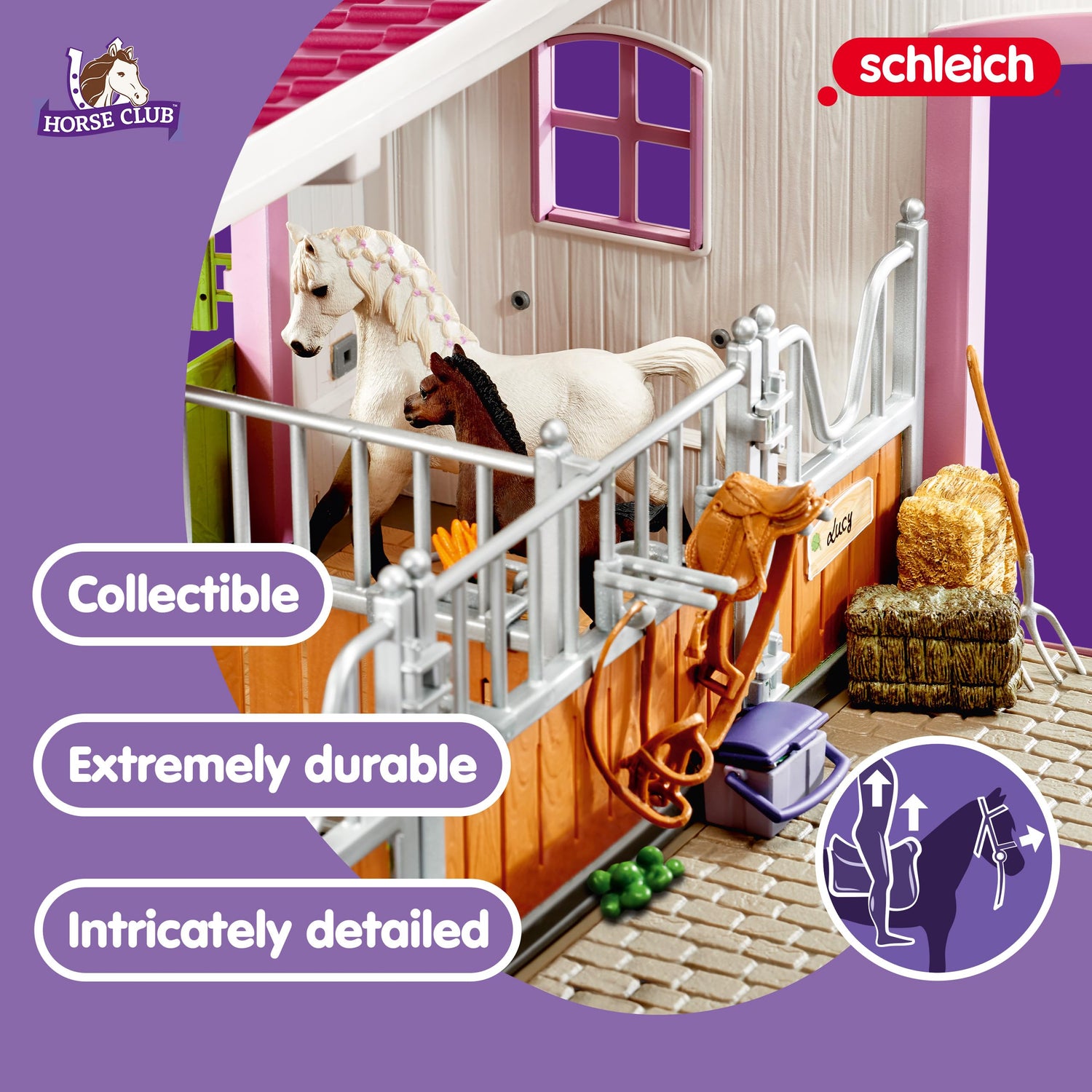 Schleich 42344 Horse Club Establo con Jinete y Caballos, Juego de 97 Piezas con 2 Figuras de Caballos, Figura del Jinete y Muchos Accesorios, Juguete para niños a Partir de 5 años