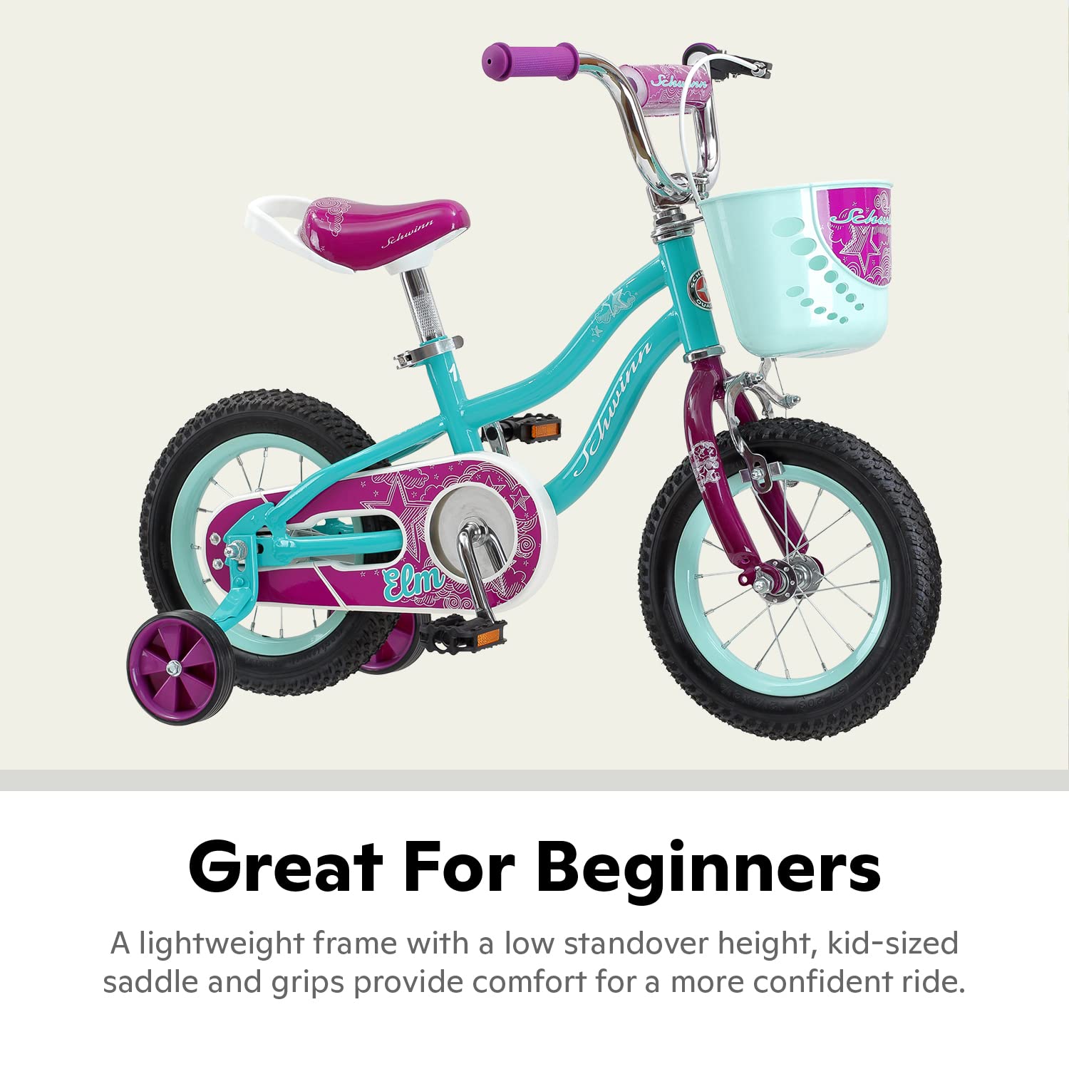 - Esta bicicleta Elm de Schwinn incorpora ruedas de 12 pulgadas y está diseñada para niñas entre 2 y 4 años o con una altura entre 71 y 96 cm. La Elm es la elección perfecta para quienes estén aprendiendo a montar o ya sepan, y con ella progresarán